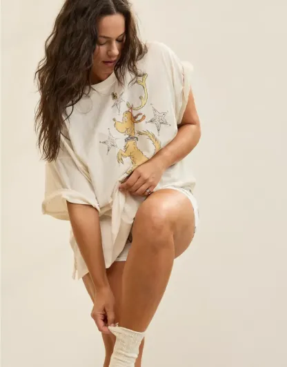 That perfectly worn in oversized sleep tee you lost? Here's your replacement: a lived in & loved look right from the start, specially made to fit like a nightie. The major plus? Retro graphics.