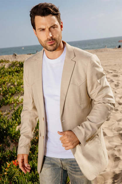 - Western-Inspired Design: Features a tailored silhouette with 2-button closure, 2 vertical arrow-style chest, and 2 arrow-style back vents.