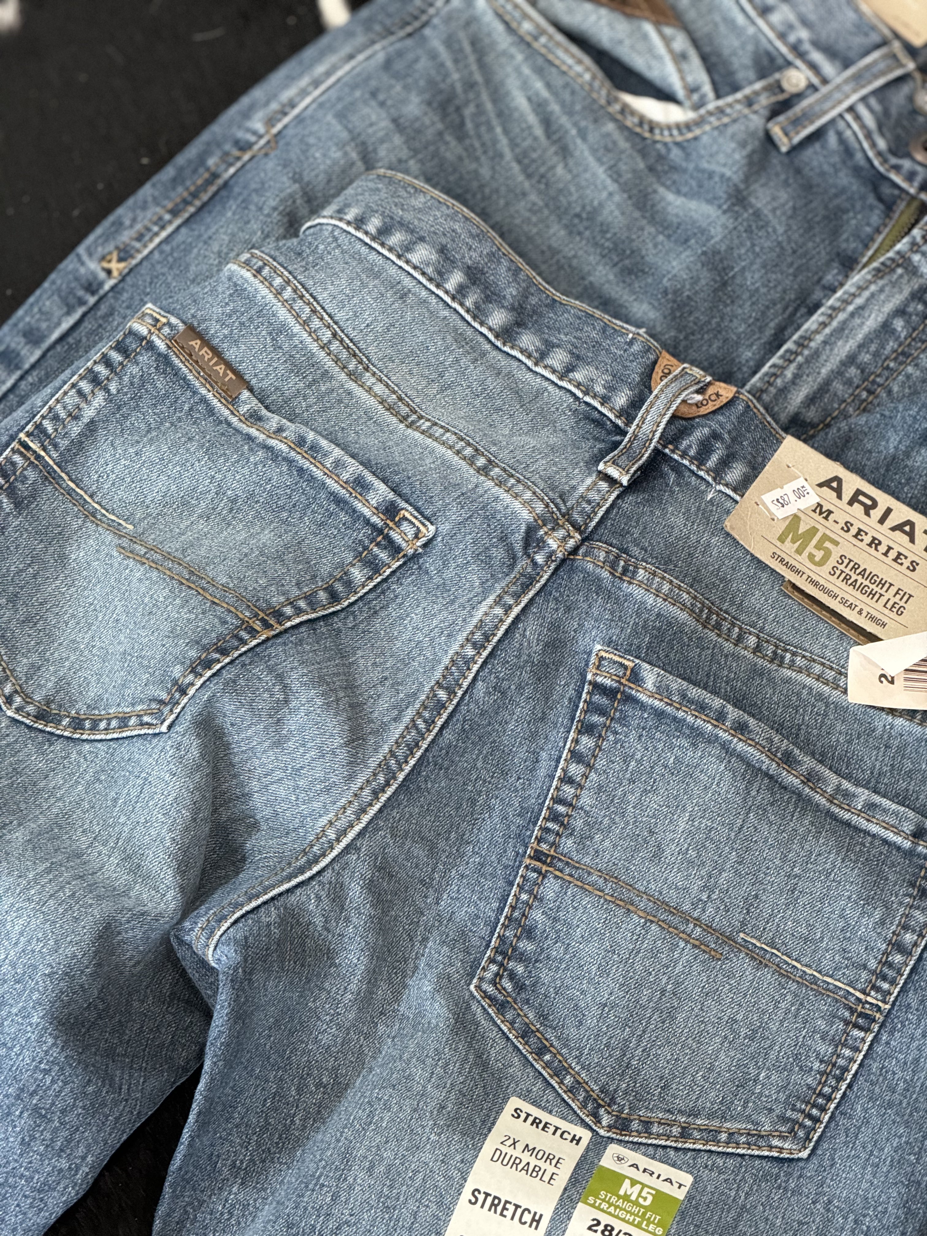 Ariat jeans have a great reputation of comfort, style and durability. They're easy to style with any of our Ariat shirts or soft shell jackets. You can wear them for everyday casual events or they can be your go-to work jeans, with a great variety to choose from, you'll never go wrong with a pair of Ariat jeans . Don't wait, order yours today!