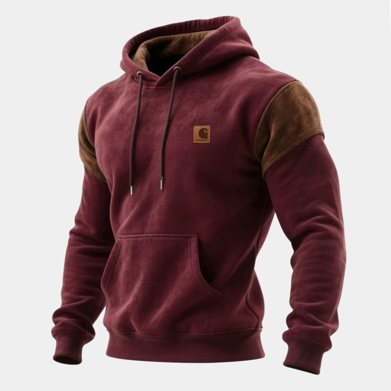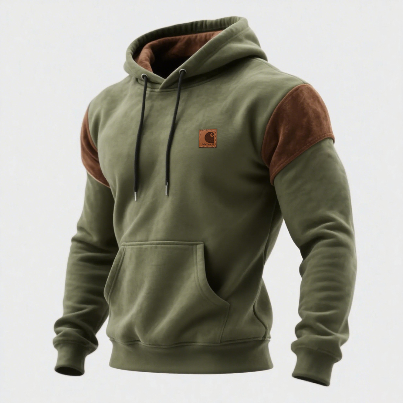 Outdoor Men's Casual Contrast Color Stitching Hooded Sweatshirt Retro Western Sweatshirt