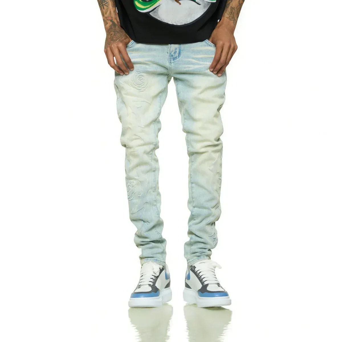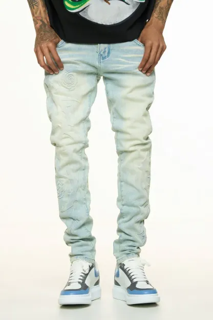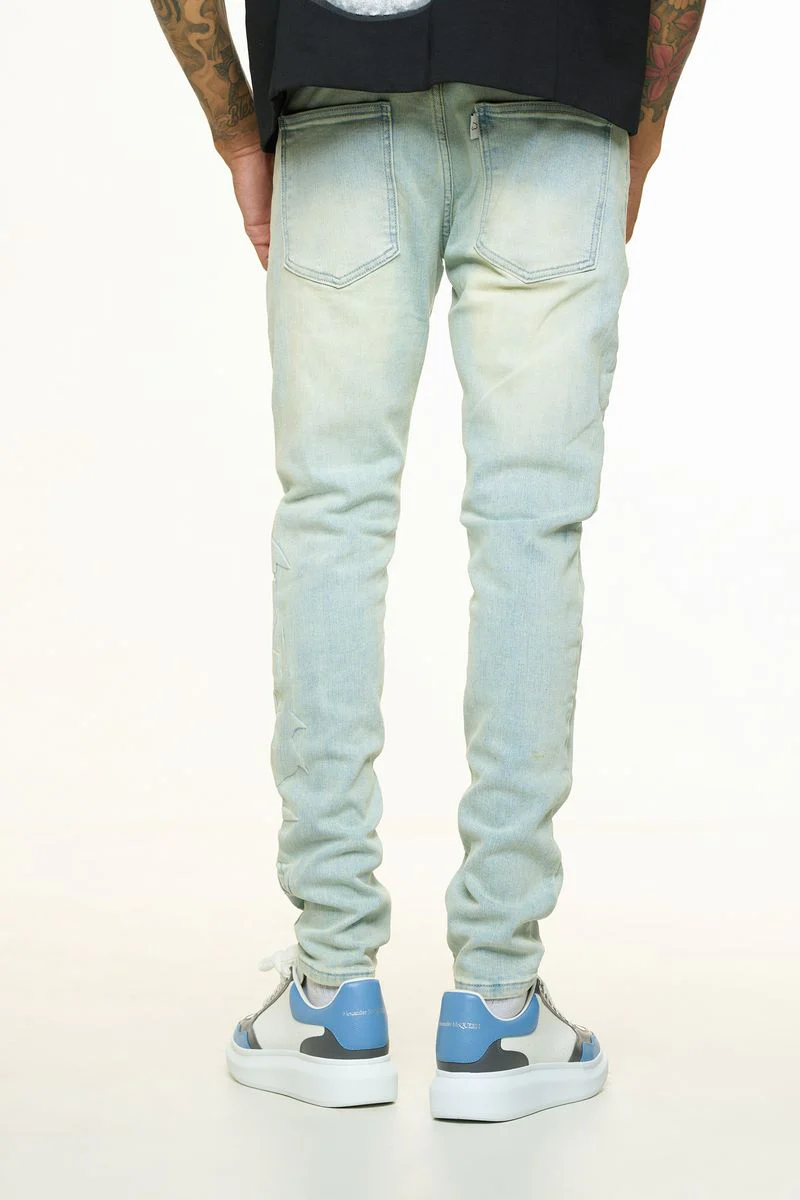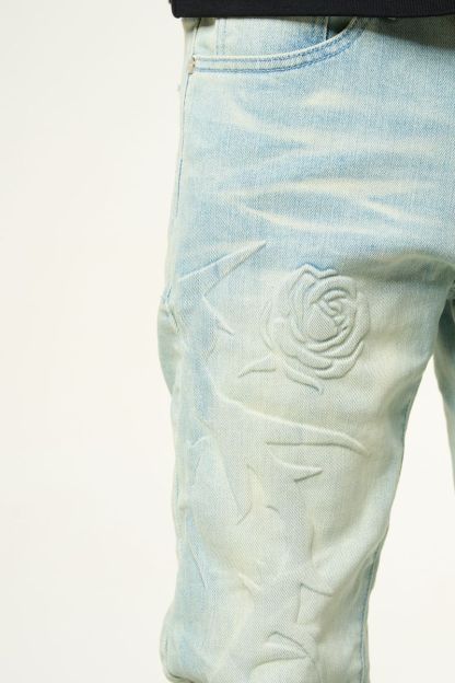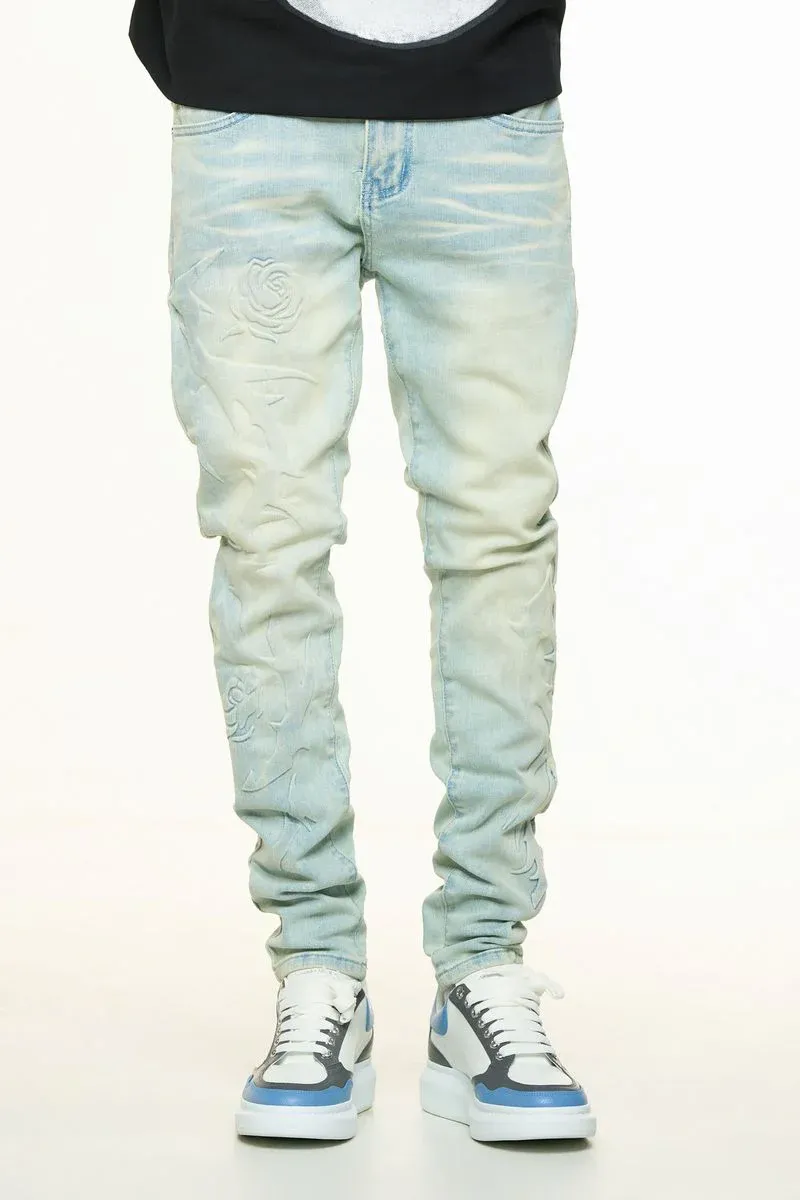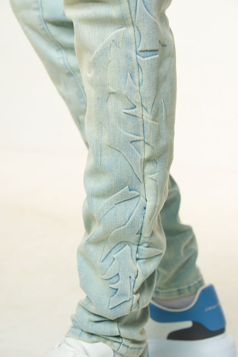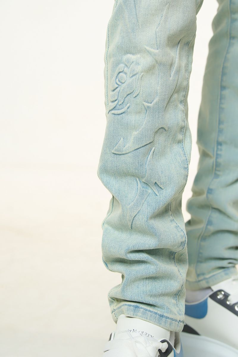 PH**LINGS LOVE IS PAIN EMBOSSED SKINNY DENIM (LIGHT BLUE/SAND)