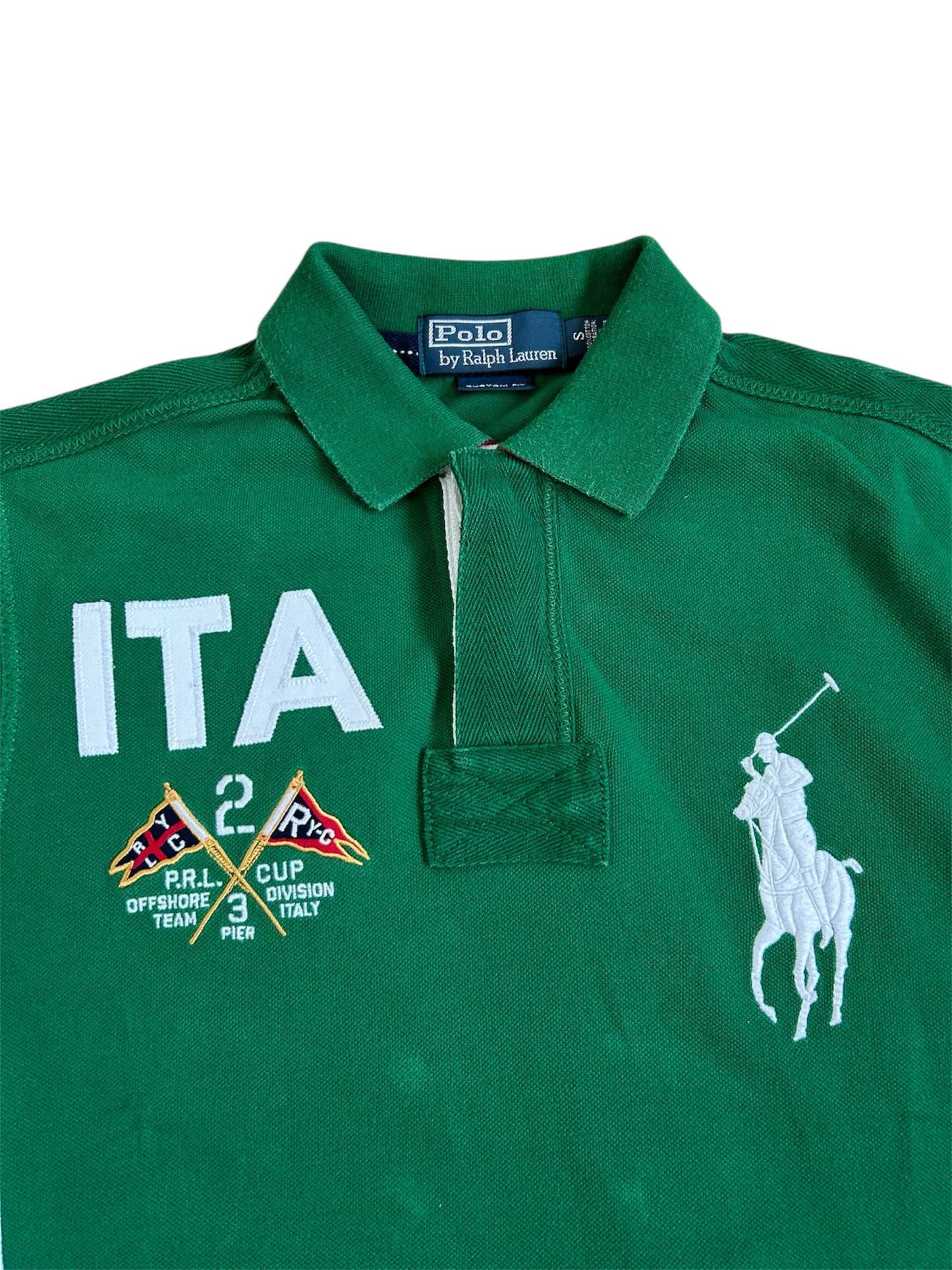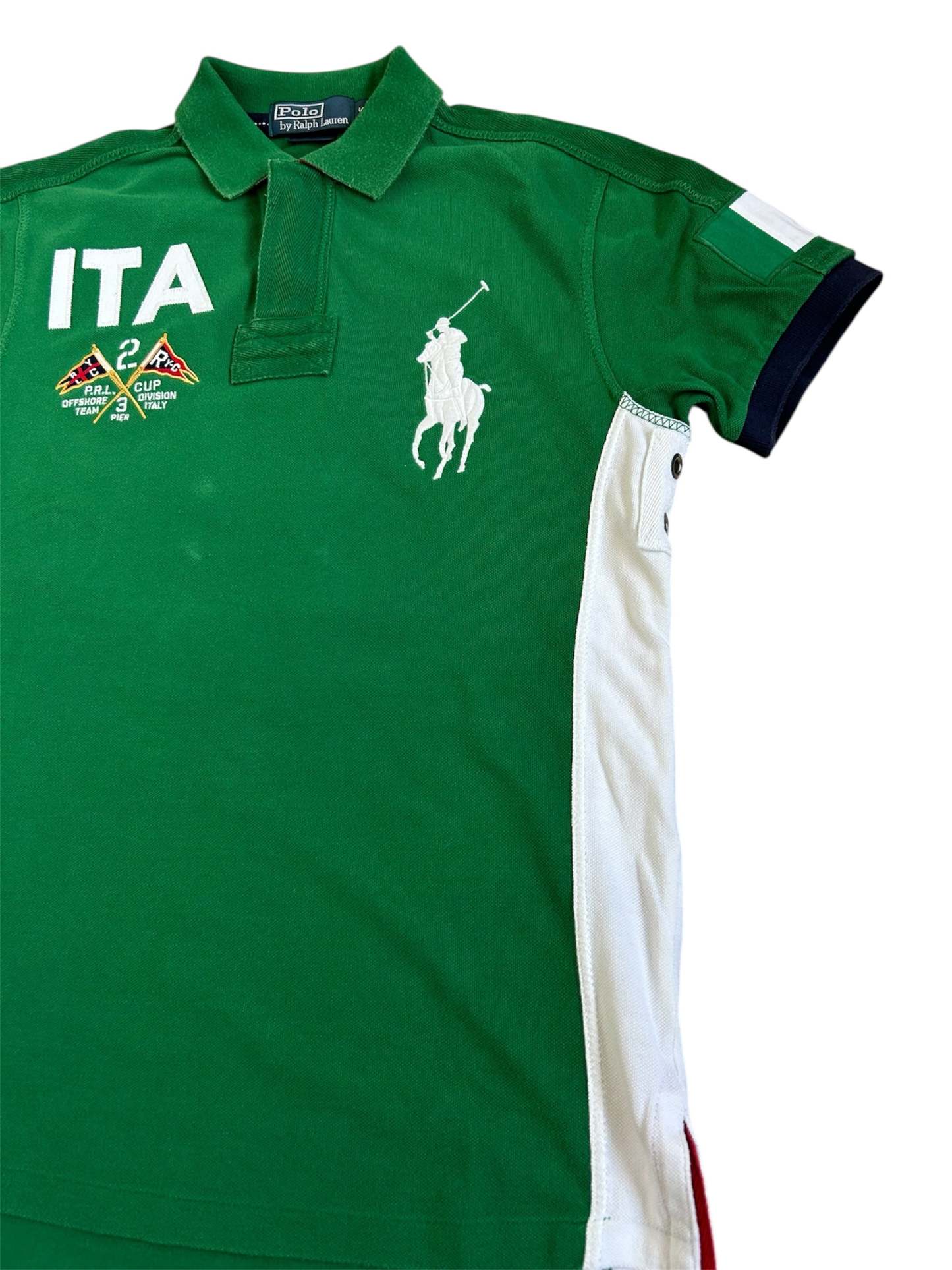 This Ralph Lauren Italy Big Pony Polo is a standout piece from the Polo Ralph Lauren International Team Collection, celebrating Italy’s rich sporting heritage. Originally released in the 2010s, this polo was available for a limited time at Ralph Lauren stores and select retailers.