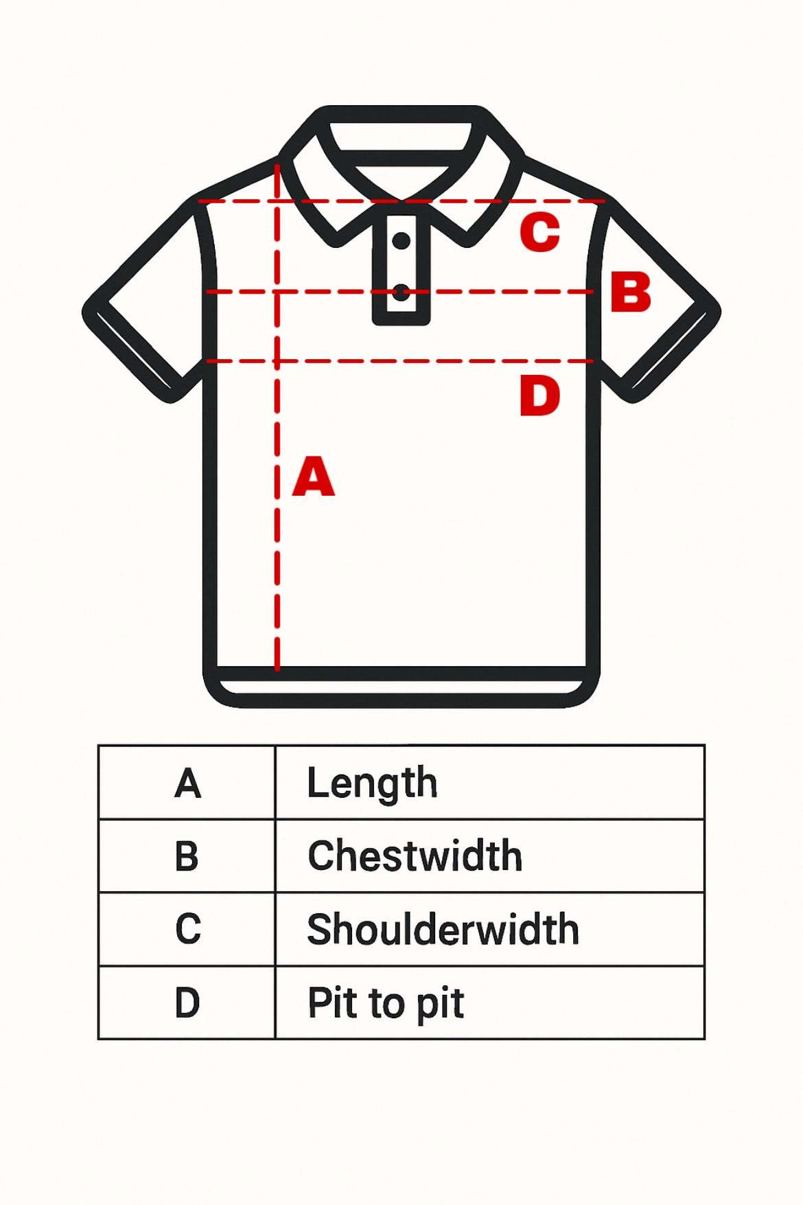 - Pit to pit: 56cm