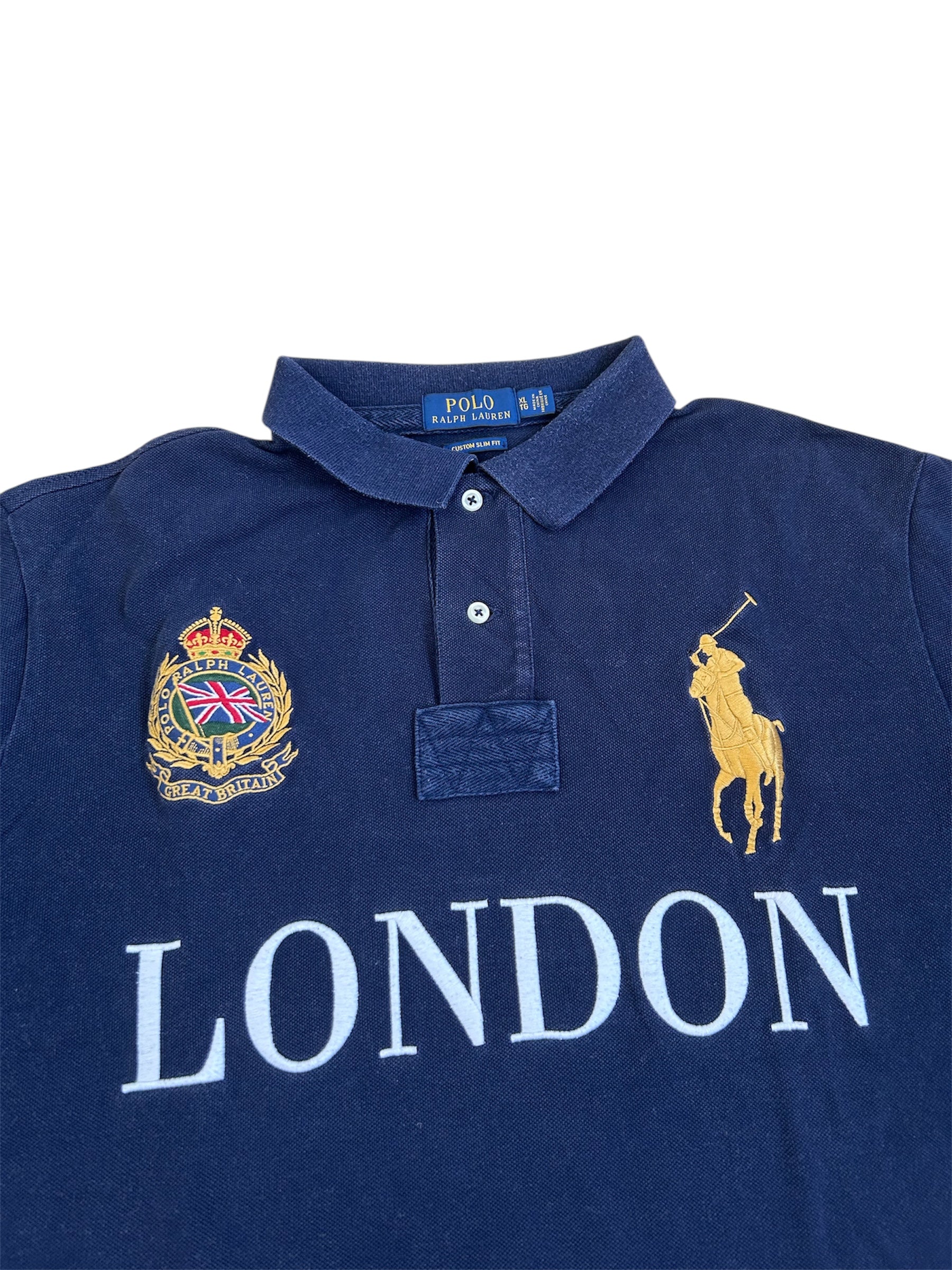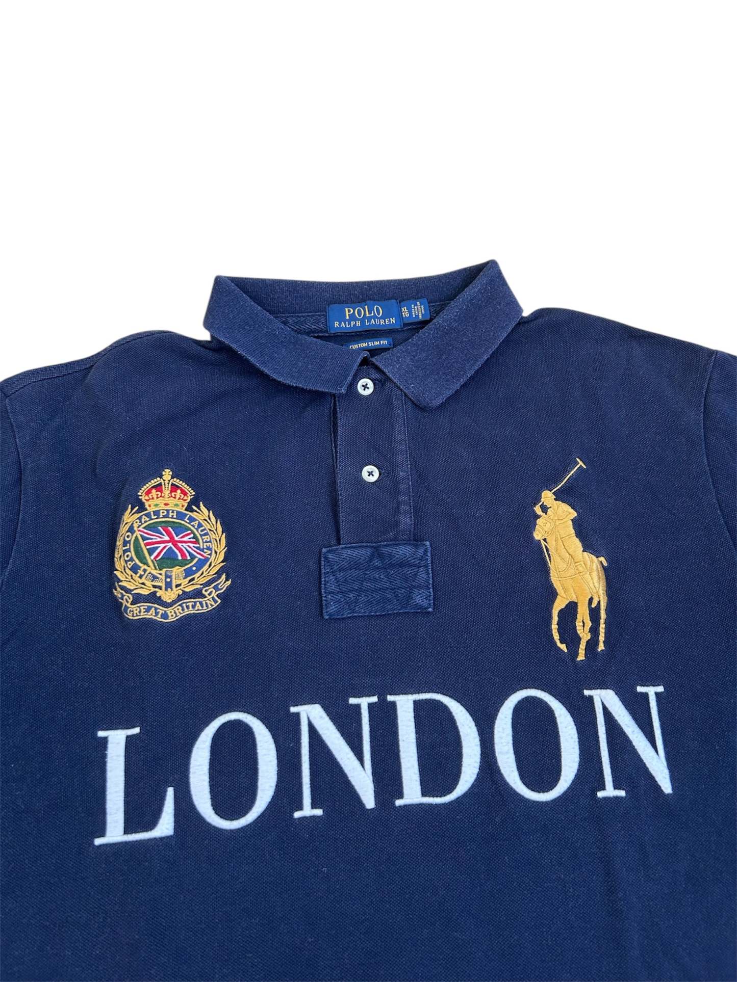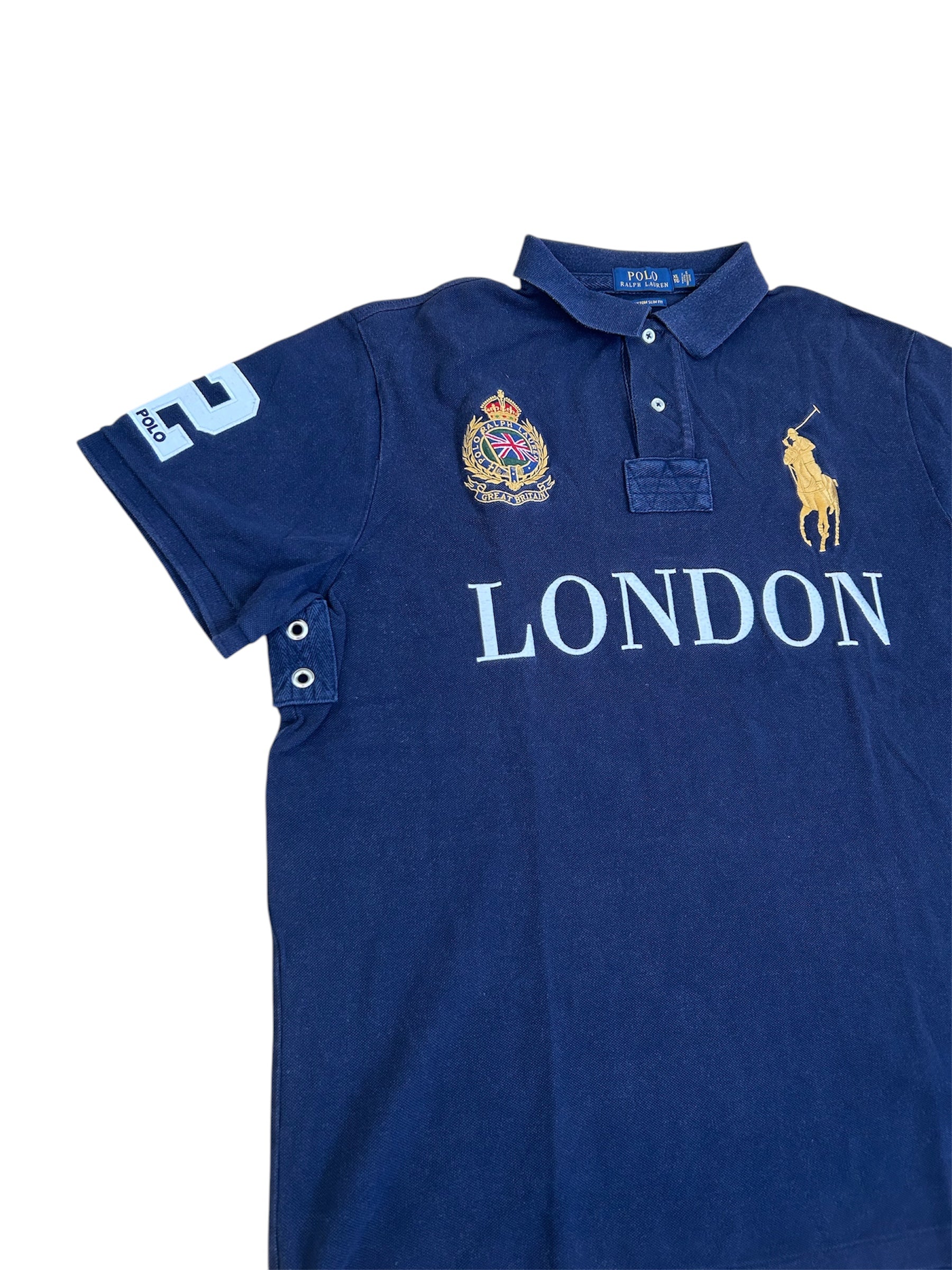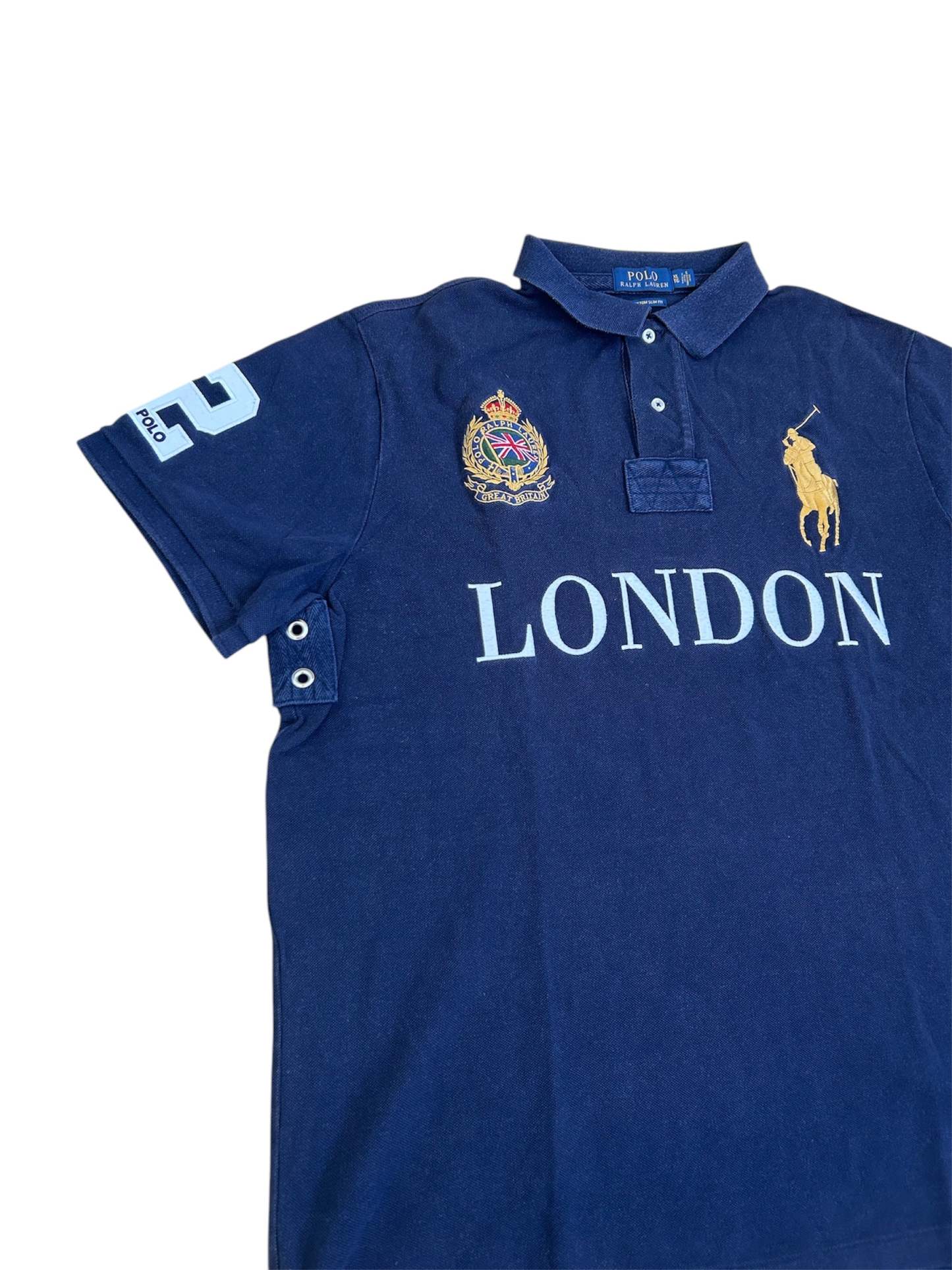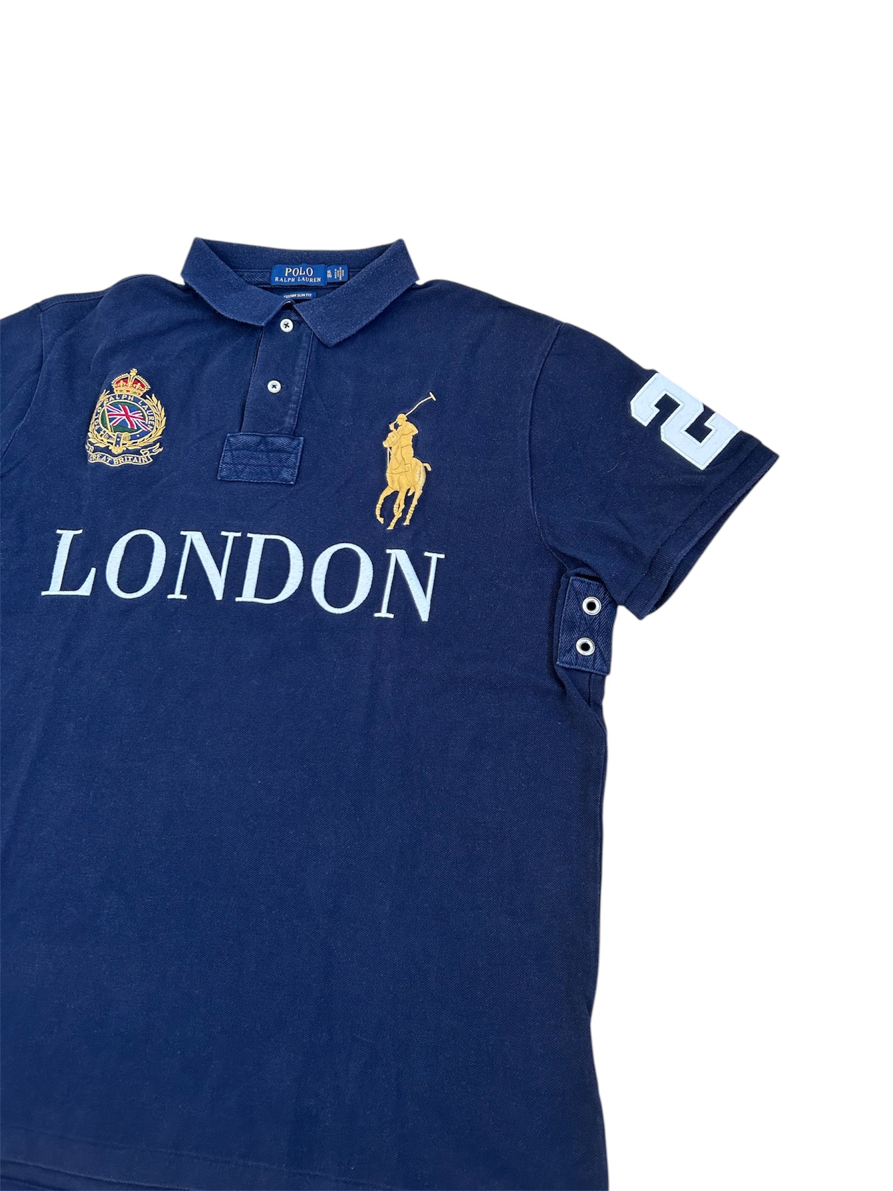 Made from 100% high-quality cotton, it features the Big Pony logo, bold "LONDON" lettering, an embroidered Great Britain crest, and the number 2 on both sleeves—a signature detail in Ralph Lauren’s polo designs. No longer in production, making it a rare and collectible item for Ralph Lauren enthusiasts.