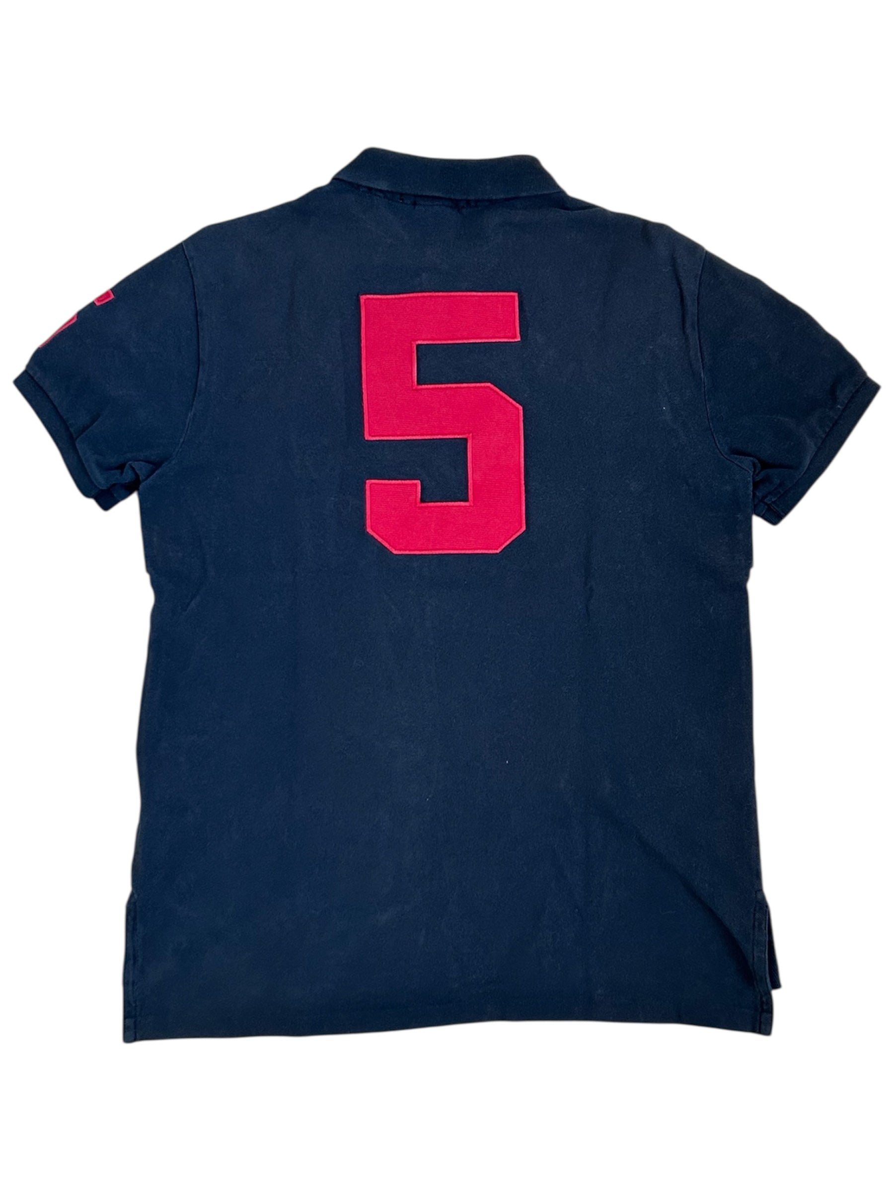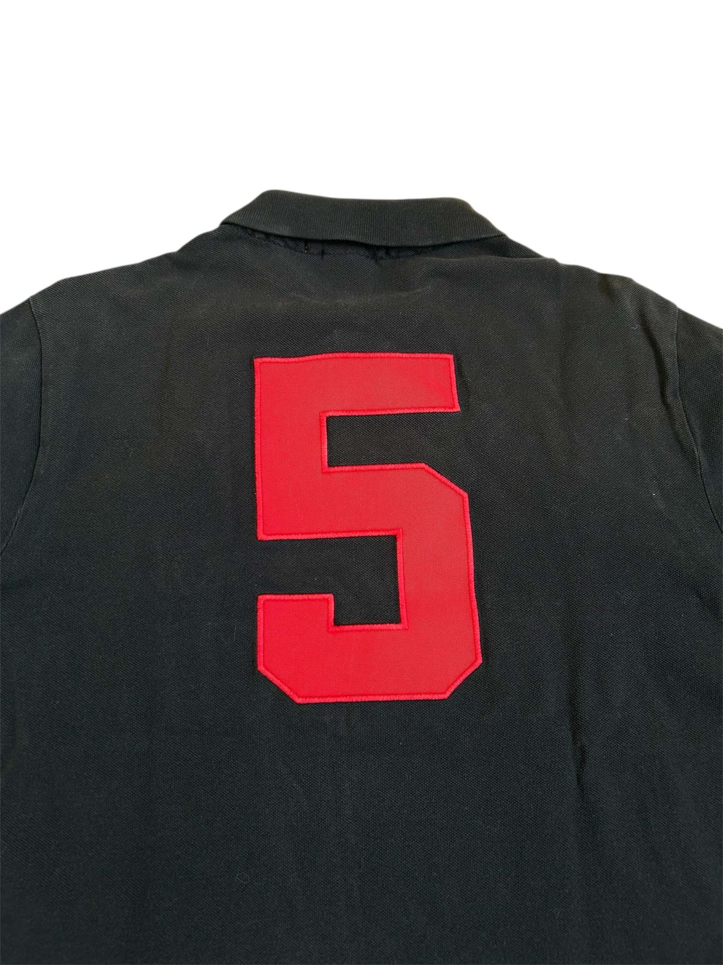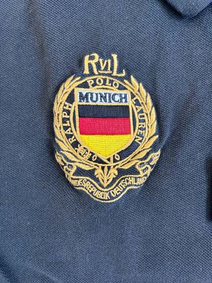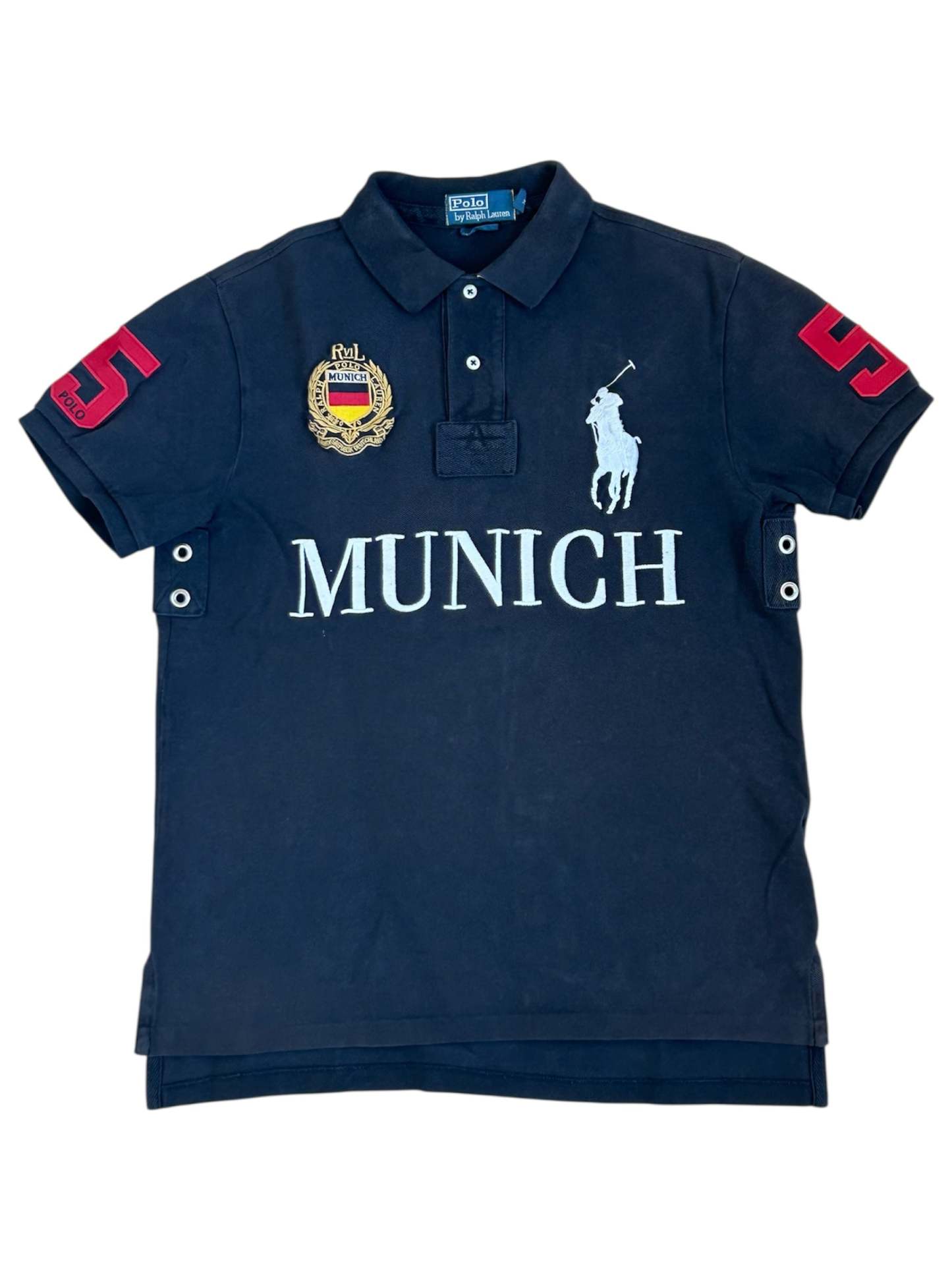 Made from 100% high-quality cotton, it features the Big Pony logo, bold "MUNICH" lettering, an embroidered Munich team crest, and the number 5 on both sleeves—a signature detail in Ralph Lauren’s polo designs. No longer in production, making it a rare and collectible item for Ralph Lauren enthusiasts.