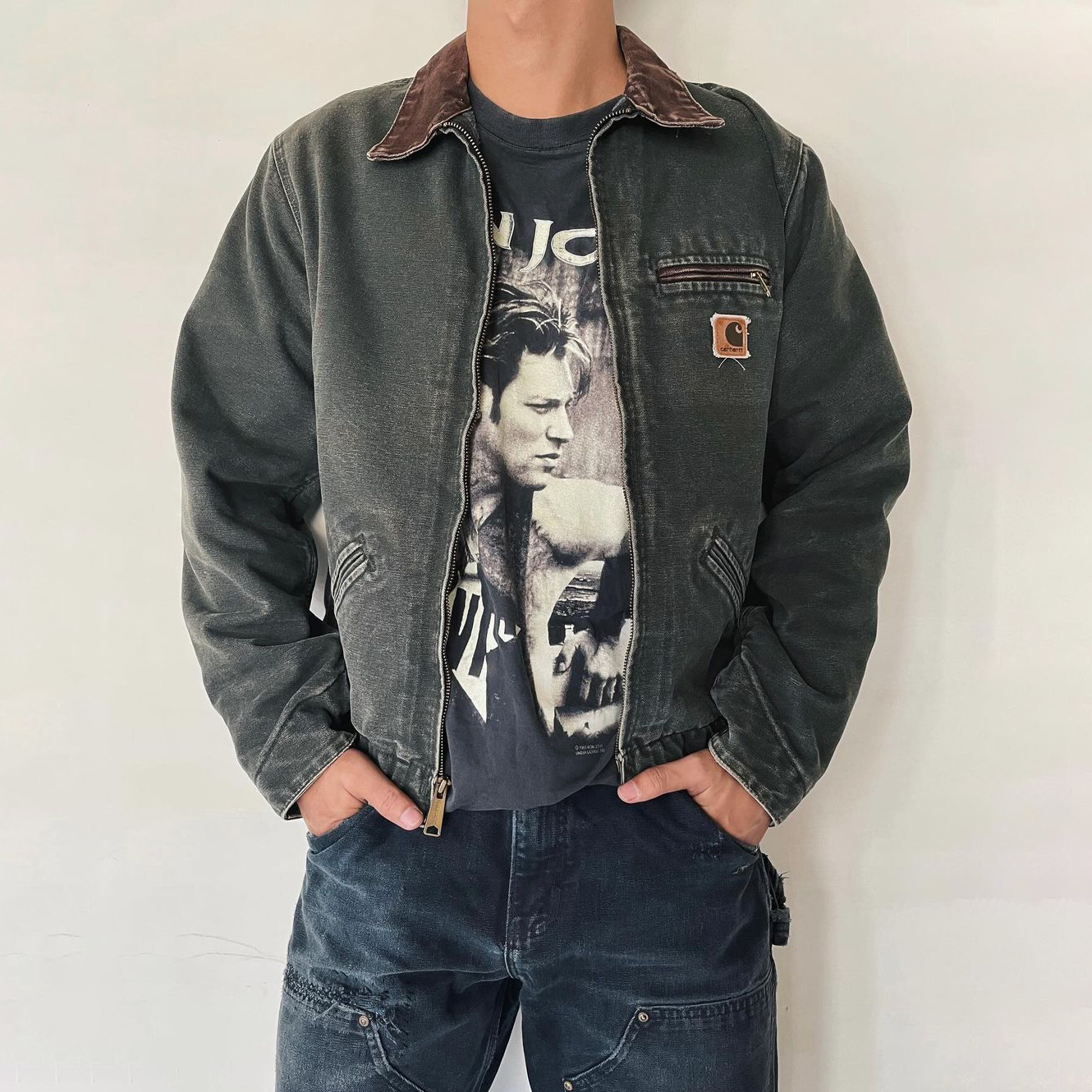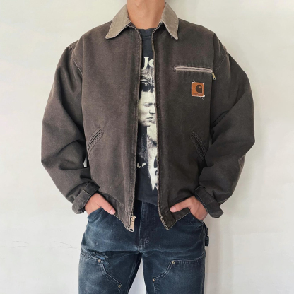 Solid Color Long Sleeve Zipper Multi-Pocket Jacket